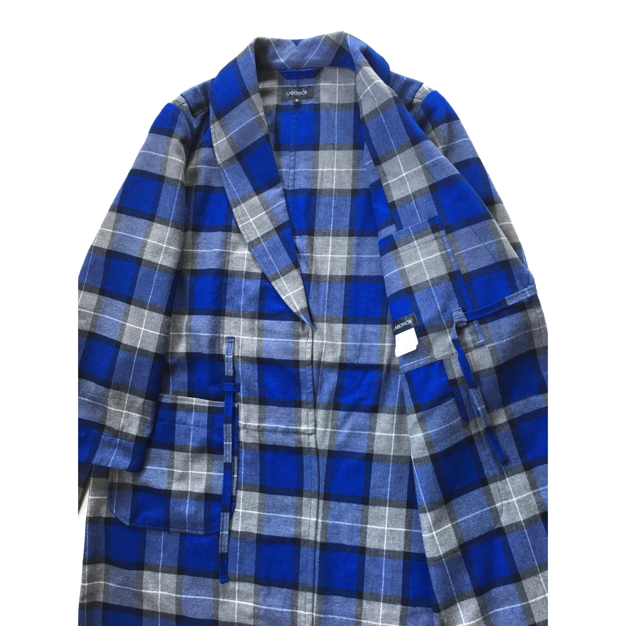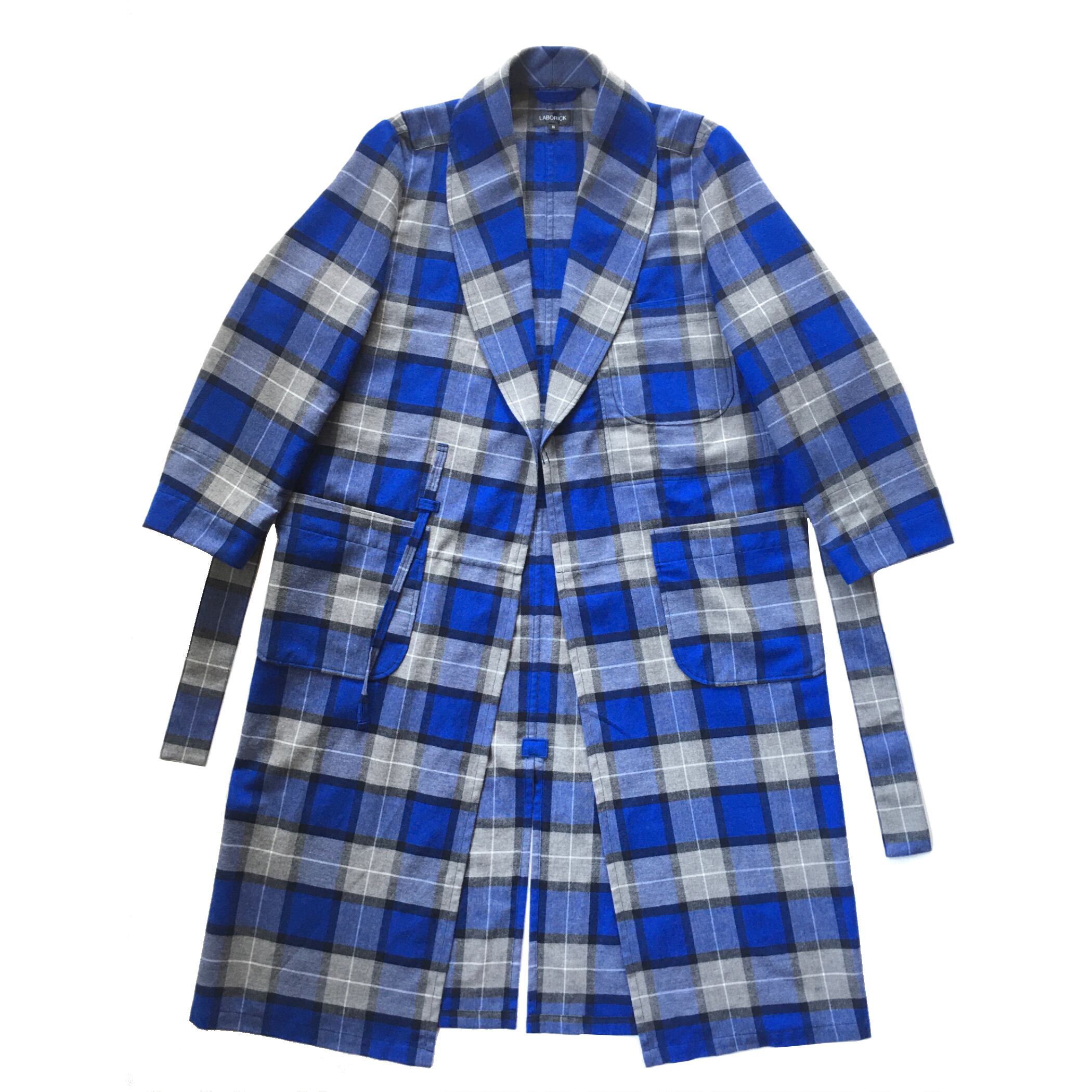 LABORICK(ラボリック)のCLASSIC GOWN(クラシックガウン)は、長い着丈にショールカラー,アウトポケットや腰ひもなど、昔ながらのディテールがシンプルに表現されたデザインが特徴です。